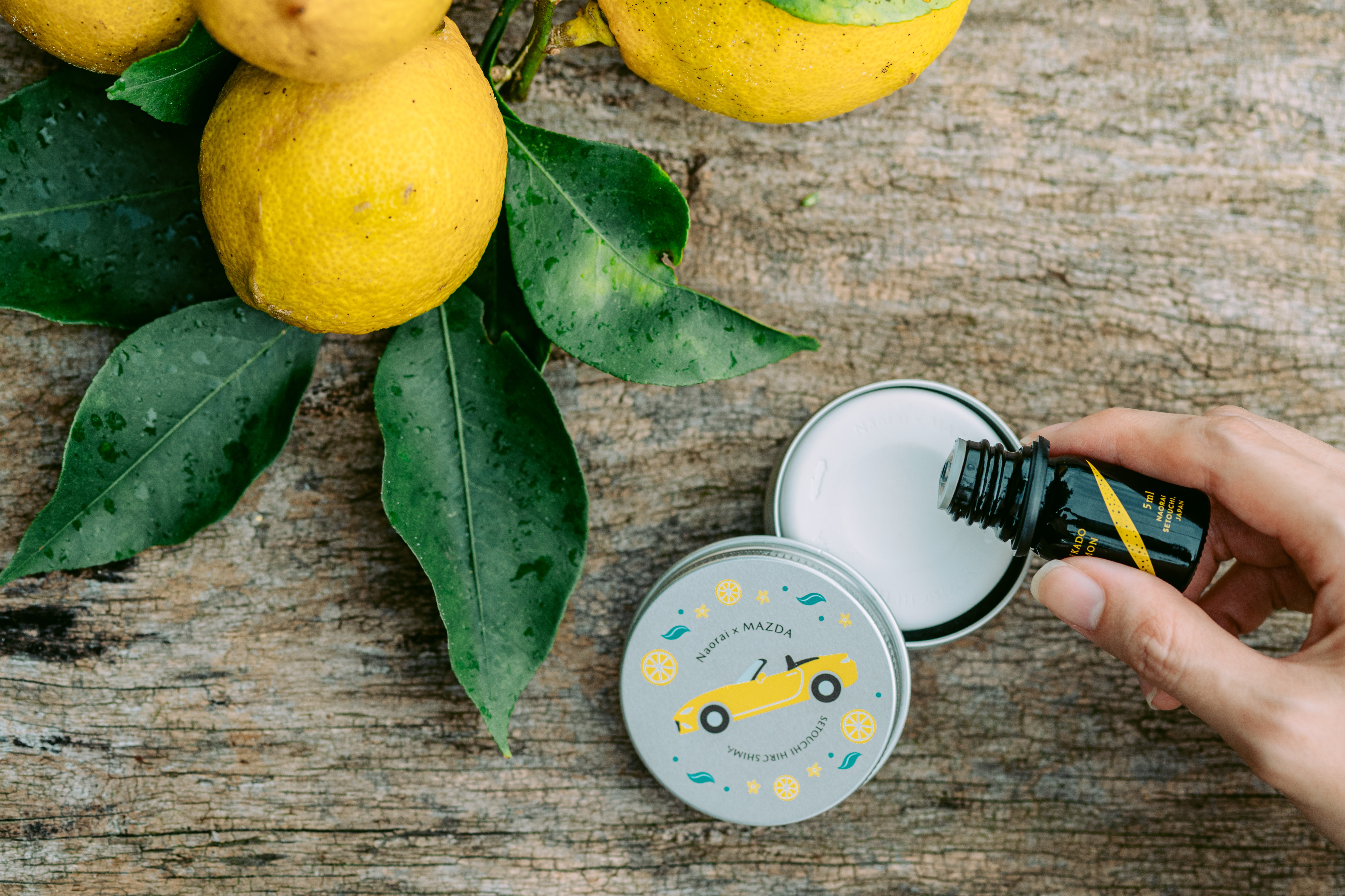 広島県に本社を置く、マツダ株式会社の地元企業が協業し地域社会の活性化に貢献することを目指したコラボレーション企画「広島つながリンク」というプロジェクトの第四弾のパートナー企業としてナオライを選んでいただき実現した、マツダ社の代表的な車の一つであるロードスターとミカドレモンのコラボレーションしたミカドレモンオイルとアロマストーンセットです。